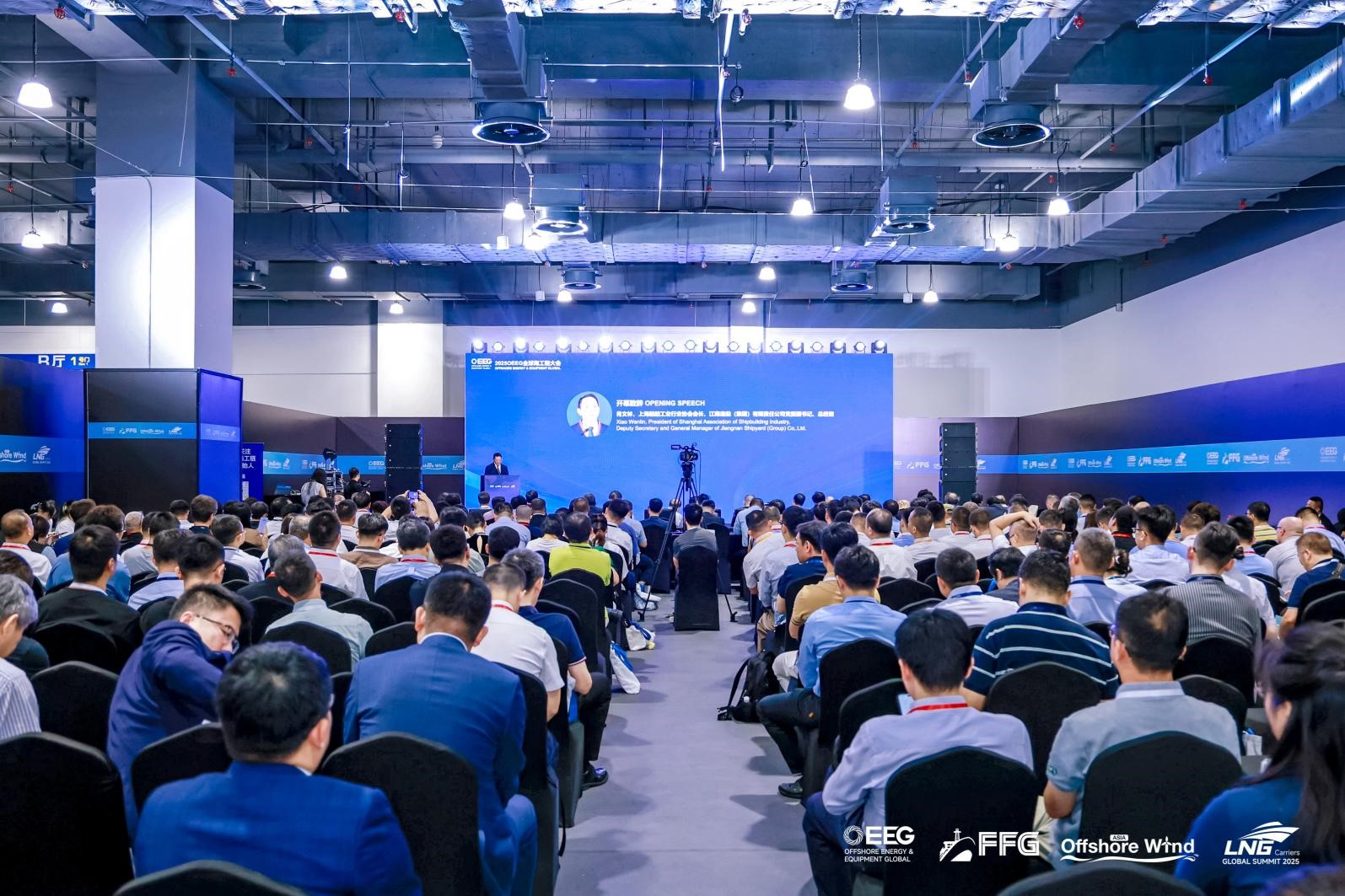 上海船舶工业行业协会会长,江南造船(集团)有限责任公司党委副书记、总经理肖文林代表主办方开场致辞;中国工程院院士周守为、林忠钦亲临现场发表院士报告,为海洋能源与工程装备产业发展锚定方向;上海市长兴岛开发建设管理委员会党组成员、专职副主任蔡潇飞,上海市工业经济联合会会长管维镛,沪东中华造船(集团)有限公司总经理翁红兵,中国船舶集团中船海舟董事长朱煜,中国海油能源经济研究院专家委员会委员杨云,巴西国家石油首席财务官Bernardo Castelloes,埃尼中国董事会主席Gianni Di Giovanni等政企代表悉数到场,共商海洋能源产业发展大计。