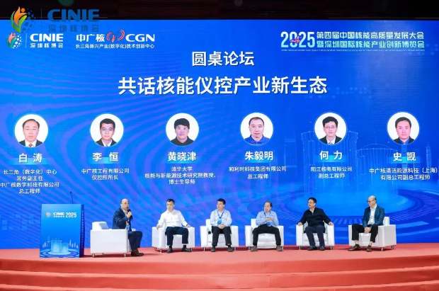 圆桌对话环节由白涛主持,朱毅明、黄晓津、阳江核电有限公司副总工程师何力、中广核工程有限公司仪控所所长李恒、中广核清洁能源科技(上海)有限公司副总工程师史觊以“共话核能仪控数智化多元生态”为主题共同探讨核能仪控产业生态共建路径。