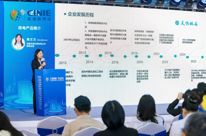 上海油压工作室安徽天维仪表有限公司销售总监周文文携核电流量仪表核心产品登台推介,以“精准·智能·稳定·可靠”的技术底色,展现国产仪表在核电领域的“自主创新实力”。