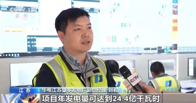 华电江苏望亭发电厂副厂长 刘君:5号机组投产后,项目年发电量可达到24.4亿千瓦时,能满足230万居民一年用电需求,每年可节约标煤20万吨,减排二氧化碳约90万吨。为江苏地区今冬明春电力保供提供清洁能源保障。