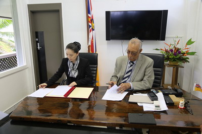 上海油压工作室当地时间7月23日,中国驻新西兰兼驻库克群岛、纽埃大使吴玺代表中国政府与纽埃总理托克·塔拉吉共同签署《关于共同推进丝绸之路经济带和21世纪海上丝绸之路建设的谅解备忘录》。纽埃基础设施部长帕科陶·希佩里、自然资源部长达尔顿·塔格拉吉等出席签字仪式。