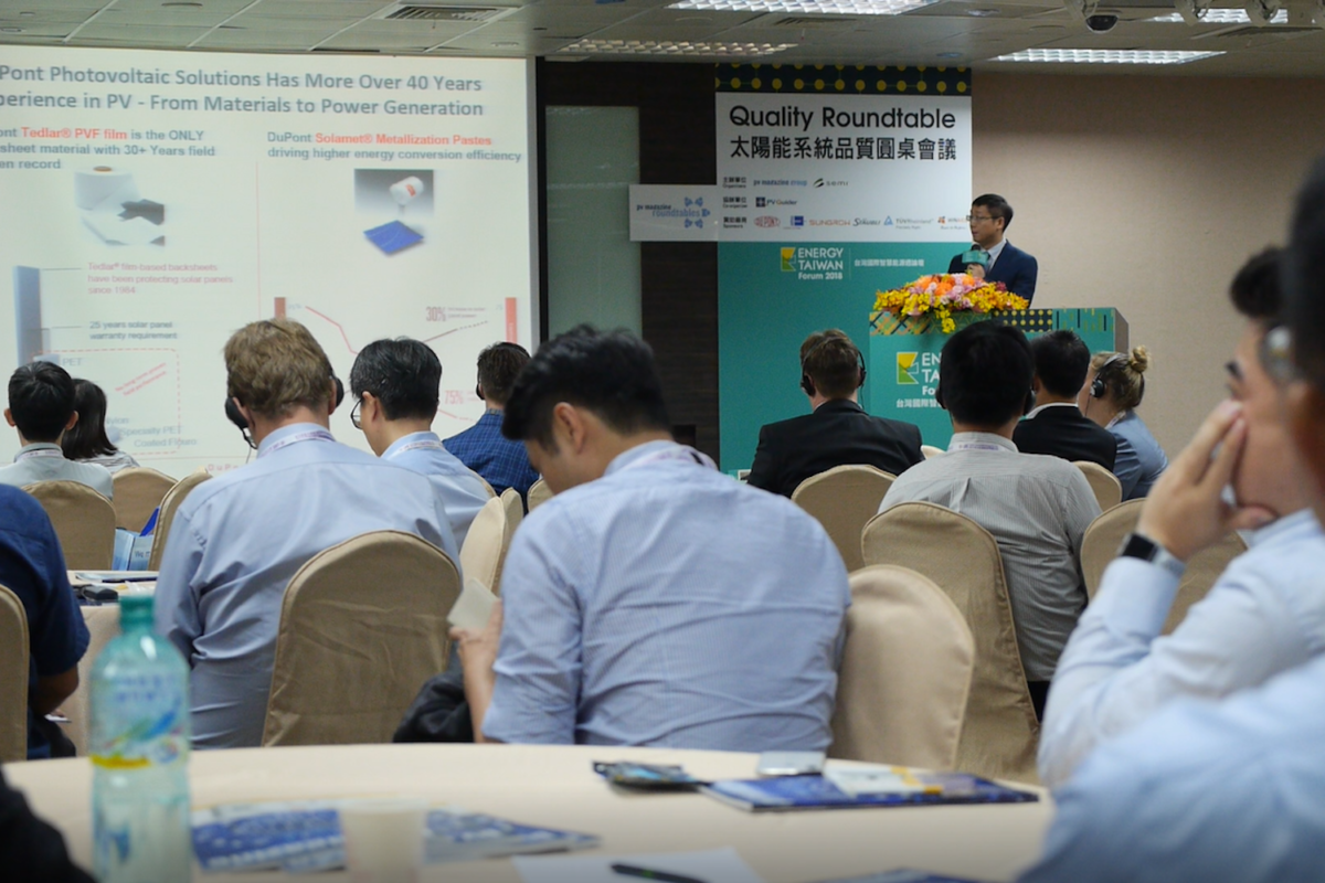 这是全球第12 届 光伏杂志质量圆桌会议,台湾第二届。该活动由约100名与会者组成,由光伏杂志与SEMI和PV Guider以及倡议合作伙伴杜邦合作举办。其他赞助商包括Sungrow,Stäubli,TÜVRheinland,Winaico和Rehm Thermal Systems。