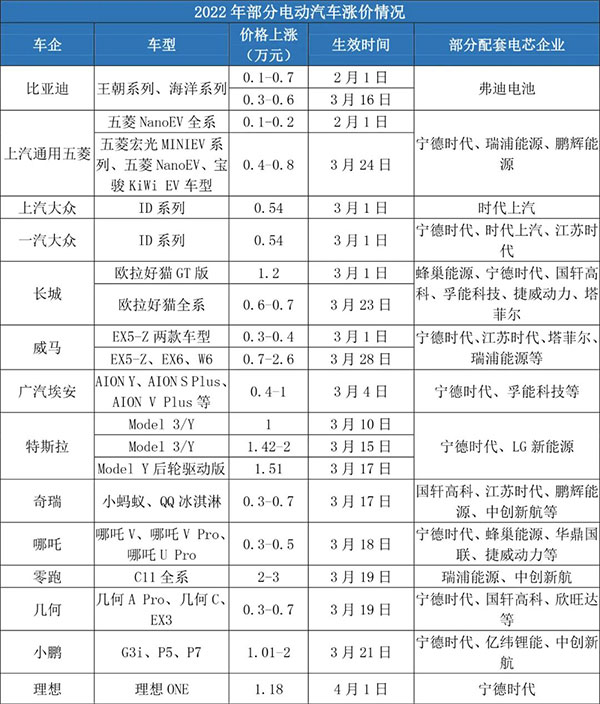 继年初第一轮涨价之后,近日,电动车企又开始了第二轮涨价。特斯拉、比亚迪领涨,理想、小鹏、威马、零跑、哪吒、几何等车企也加入到了涨价大军的阵营。